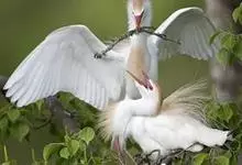白鹭:白鹭属共有13种鸟类,其中有大白鹭、中白鹭、小白鹭,黄嘴白鹭四种,体羽皆是全白,均称为“白鹭”。这4种白鹭均是中等体型的白色鹭。与牛背鹭的区别在体型较大而纤瘦,嘴及腿黑色,趾黄色,繁殖羽纯白,…全部>>