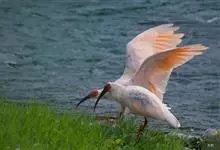 朱鹮是鹈形目鹮科朱鹮属的鸟类动物。其雄鸟通体白色,羽干及两翅与尾等均沾染粉红色;颈项上有很多长矛状羽毛,形成羽冠,耸立时非常夺目;嘴长而向下曲,呈黑色,先端朱红,脚的裸露部分亦呈亮红色。雌鸟羽色略同,…全部>>