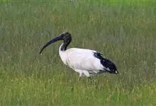 圣鹮头、颈黑色,身体白色,初级和次级飞羽尖端黑色。喙长且厚、黑色下弯,跗蹠与趾黑色。下背部有大量黑色纱状装饰羽,翼下裸露皮肤红色,体侧有时带黄褐色。亚成鸟的头、颈有羽毛,斑驳黑色带有白色纵纹,…全部>>