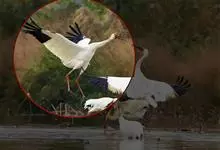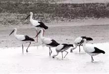 白鹳,是鹳形目鹳科鹳属鸟类。白鹳曾确定为3个亚种:指名亚种、中亚亚种和东方亚种。其体长约111厘米。嘴形直、粗厚而侧扁;体羽除飞羽黑色具铜绿色金属光泽外,余部均为白色;眼周裸区、脚、趾红色,嘴黑色。…全部>>