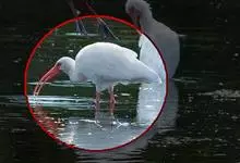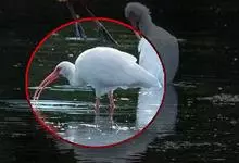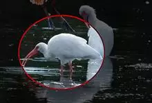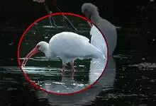 美洲白鹮:是一种大型涉禽。体长56-58厘米,体重750-1050克。头和颈裸出,喙很长,向下弯曲。飞行时颈和脚伸直,交替地拍动翅膀和滑翔。成年美洲白鹮,除了嘴和腿部是橘红色,翅膀末端有黑色外,…全部>>