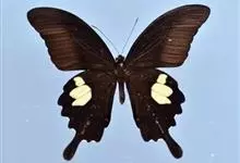 玉斑凤蝶Papilio helenus 别名白纹凤蝶,是凤蝶科凤蝶属美凤蝶亚属大型种类。雌雄同型;体翅皆黑色,后翅正面中室外有3个并列的白色斑,亚外缘有1列模糊的新月形红色斑,…全部>>