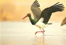 黑鹳是鹳形目鹳科鹳属鸟类,俗称乌鹳、钢鹳、老鹤。黑鹳头、颈和脊均呈黑褐色,故名黑鹳。黑鹳上体羽黑色、并带有绿紫色金属光泽,胸腹部羽白色;嘴、腿均红色;两性相似;成鸟嘴长而直,基部较粗,…全部>>