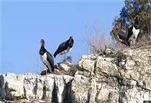 黑头鹮鹳:大型涉禽。体长102厘米,翼展150-175厘米,体重2050-2640克。寿命10年。嘴长而粗壮,飞时头颈伸直。雌雄相似。成鸟上体白色,下体白色。翼下覆羽有黑色横带,具绿色光泽和白色羽缘。…全部>>