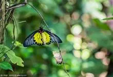 金裳凤蝶是凤蝶科、裳凤蝶属的动物。金裳凤蝶身体呈黑色,头、颈和胸侧有红毛,腹部有黑黄两色相间条纹,雄蝶前翅黑色,具黑天鹅绒光泽,各脉两侧灰白色,后翅金黄色,各室外缘有等腰三角形黑斑1枚,斑内侧有晕,…全部>>