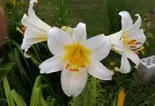 麝香百合:在中国台湾亦称铁炮百合。鳞茎球形或近球形,高2.5-5厘米;鳞片白色。茎高45-90厘米,绿色,基部为淡红色。叶散生,披针形或矩圆状披针形,两面无毛。花单生或2-3朵;花喇叭形,白色,筒外…全部>>