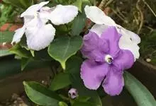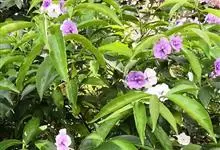 鸳鸯茉莉,茄科鸳鸯茉莉属常绿灌木植物,高1米。茎皮深褐色;分枝力强;单叶互生纸质;花簇生,聚伞花序,花冠五裂花瓣锯齿,含苞时蘑菇状深紫色,花香浓郁;花期4-10月。鸳鸯茉莉花朵芳香,…全部>>