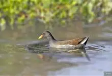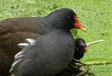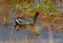 黑水鸡:是鹤形目、秧鸡科的鸟类,共有12个亚种。中型涉禽,体长24-35厘米。嘴长度适中,鼻孔狭长;头具额甲,后缘圆钝;嘴和额甲色彩鲜艳。翅圆形,第2枚初级飞羽最长,或第2枚和第3枚初级飞羽等长,…全部>>