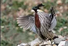血雉雉科血雉属鸟类,别名血鸡、松花鸡,血雉的雄鸟大覆羽、尾下覆羽、尾上覆羽、脚、头侧、腊膜为红色,故称血雉。其别名甚多,各地皆异。在甘肃,因其胸侧和翅上覆羽沾绿,被称为“绿鸡”;因其羽毛形似柳叶,…全部>>