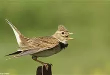 云雀,是雀形目百灵科云雀属鸟类。云雀上体大都砂棕色,各羽纵贯以宽阔的黑褐色轴纹;上背和尾上覆羽的黑褐纵纹较细,棕色因而较显著;后头羽毛稍有延长,略成羽冠状;两翅覆羽黑褐,…全部>>