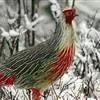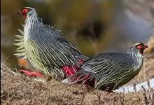 血雉雉科血雉属鸟类,别名血鸡、松花鸡,血雉的雄鸟大覆羽、尾下覆羽、尾上覆羽、脚、头侧、腊膜为红色,故称血雉。其别名甚多,各地皆异。在甘肃,因其胸侧和翅上覆羽沾绿,被称为“绿鸡”;因其羽毛形似柳叶,…全部>>