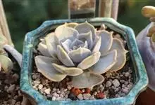 蓝石莲是景天科、拟石莲花属的多肉植物。茎部粗壮,成熟植株茎部木质化。叶片莲座型密集排列,株径不会很大,叶片相对较薄,常年绿色,表面布有白色粉末,中部凹陷,呈倒水滴状。叶尖较尖,叶缘光滑无褶皱,…全部>>