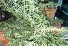 异叶南洋杉 Franco)是南洋杉科南洋杉属的常绿乔木。盆栽为幼树,高在2米以下,在原产地可高达50米。树冠深绿色尖塔形;新表皮为古铜色;茎干直立,侧枝轮生;叶有二型:幼树或侧枝上的叶钻形,…全部>>