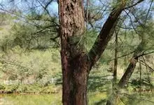 落羽杉 Rich.),杉科落羽杉属木本植物。树干尖削度大,基部通常膨大,具膝状呼吸根,树皮棕色,裂成长条片;一年生小枝褐色,侧生短枝;叶线形;球果具短柄,熟时淡褐黄色,被白粉;花期3月;球果10月成熟。…全部>>