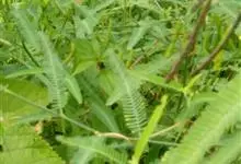 合萌,别名田皂角、水松柏、水槐子、水通草,中药名:梗通草。豆科一年生草本或亚灌木状植物,茎直立,叶对生,总状花序,腋生,花萼膜质,花冠淡黄色,子房扁平,线形。种子黑棕色,肾形,花果期7~10月。…全部>>