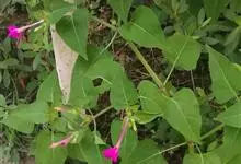 即紫茉莉,英文名:Four-o'clock,Marvel of Peru,为紫茉莉科、紫茉莉属多年生草本植物,一年生栽培。株高50~80cm。根粗壮,茎多分枝而散生。叶对生,卵形或心脏形。花数朵簇生…全部>>