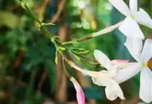素馨花,木犀科素馨属多年生的攀援灌木植物。攀援灌木,小枝圆柱形,具棱或沟;叶对生,叶轴常具窄翼,小叶片卵形或长卵形;聚伞花序顶生或腋生,花序梗长,苞片线形,花萼无毛,裂片锥状线形,花冠白色,…全部>>