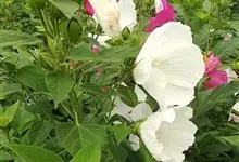 芙蓉葵是锦葵科木槿属植物,又名草芙蓉、大花秋葵,原产于北美。落叶灌木状。叶大、广卵形,叶柄、叶背密生灰色星状毛。花大,单生于叶腋,有白、粉、红、紫等色。喜阳、略耐阴,宜温暖湿润气候,忌干旱,耐水湿,…全部>>