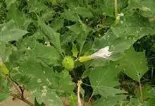 曼陀罗,茄科曼陀罗属一年生大型草本植物,全株光滑。有臭气;叶呈广卯形,边缘具不规则波状浅齿裂;花单生于枝杖间或叶腋,直立,有短梗;花萼是筒状裂片三角形,颜色为白色或淡紫色;果实为蒴果卵状,…全部>>