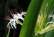 文殊兰 Baker)是石蒜科文殊兰属的多年生粗壮草本。鳞茎长圆柱形;叶深绿色,线状披针形,边缘波状,先端渐尖具尖头;花茎直立,与叶近等长;总苞片披针形;小包片线形;雄蕊淡红色,花药线形,…全部>>