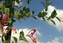 忍冬,是忍冬科忍冬属半常绿缠绕藤本植物,别名又称鸳鸯藤、金银花。忍冬幼枝呈橘红褐色,常常覆盖粗糙的硬毛;叶片一般有披针形和卵形,边缘有粗糙的绒毛,上面深绿色,下面淡绿色;忍冬花苞片大,花瓣卵形或椭圆形,…全部>>