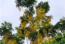 腊肠树:是豆科腊肠树属植物。落叶乔木,高可达15米;枝细长;树皮灰色,老时粗糙,暗褐色。叶长30-40厘米,小叶对生,薄革质,阔卵形,卵形或长圆形,边全缘,幼嫩时两面被微柔毛,老时无毛;叶脉纤细,…全部>>