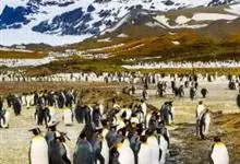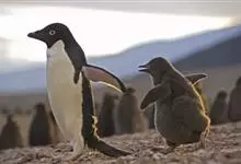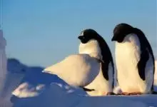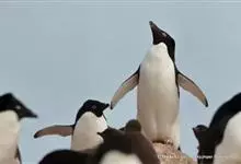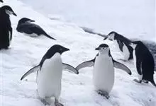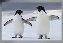 阿德利企鹅在企鹅家族中属中、小型种类,体长72-76厘米,和许多种类企鹅一样,雌鸟和雄鸟同形同色,从外形难以辨认。眼圈为白色,头部呈蓝绿色,嘴为黑色,嘴角有细长羽毛。羽毛由黑、白两色组成,…全部>>