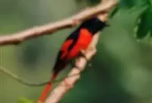 灰喉山椒鸟:共有8个亚种。体长18-22厘米。雄鸟头部和背亮黑色,腰、尾上覆羽和下体朱红色,翅黑色具一大一小的两道朱红色翼斑。中央尾羽黑色,外侧尾羽基部黑色,端部红色。…全部>>