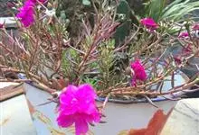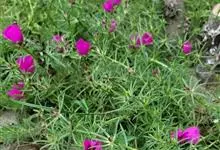 大花马齿苋:一年生草本,高10-30厘米。茎平卧或斜升,紫红色,多分枝,节上丛生毛。叶密集枝端,较下的叶不规则互生,叶片细圆柱形,无毛。花单生或数朵簇生枝端,直径2.5-4厘米,…全部>>
