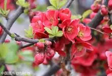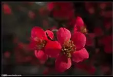 贴梗海棠 Nakai)是蔷薇科、木瓜海棠属植物。落叶灌木,高达2米,枝条直立开展,有刺。叶片卵形至椭圆形,稀长椭圆形,长3-9厘米,宽1.5-5厘米。花先叶开放,3-5朵簇生于二年生老枝上。…全部>>