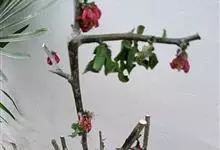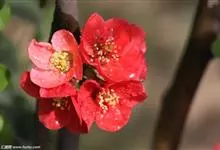 贴梗海棠Nakai)是蔷薇科、木瓜海棠属植物。落叶灌木,高达2米,枝条直立开展,有刺。叶片卵形至椭圆形,稀长椭圆形,长3-9厘米,宽1.5-5厘米。花先叶开放,3-5朵簇生于二年生老枝上。…全部>>