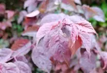 紫锦木是大戟科、大戟属的常绿乔木。叶圆卵形,主脉于两面明显,侧脉数对,边缘全缘,两面红色;花序生于二歧分枝的顶端,总苞阔钟状,裂片呈三角形,边缘具毛,腺体深绿色呈半圆形,…全部>>