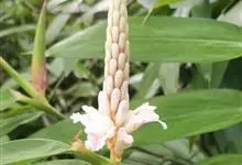 益智,别名:益智仁、益智子。姜科,山姜属多年生草本植物。株高可达3米;茎丛生;根茎短,叶片披针形,总状花序在花蕾时全部包藏于一帽状总苞片中,花时整个脱落,花序轴被极短的柔毛;花萼筒状,花冠白色,…全部>>