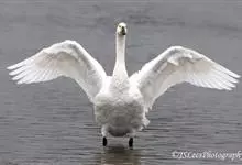 小天鹅为大型水禽,体长110~130厘米,体重4~7千克,雌鸟略小。它与大天鹅在体形上非常相似,同样是长长的脖颈,纯白的羽毛,黑色的脚和蹼,身体也只是稍稍小一些,颈部和嘴比大天鹅略短,但很难分辩。最…全部>>
