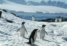 阿德利企鹅在企鹅家族中属中、小型种类,体长72-76厘米,和许多种类企鹅一样,雌鸟和雄鸟同形同色,从外形难以辨认。眼圈为白色,头部呈蓝绿色,嘴为黑色,嘴角有细长羽毛。羽毛由黑、白两色组成,…全部>>