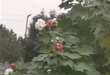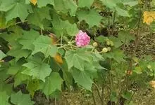 木芙蓉,锦葵科木槿属落叶灌木或小乔木。小枝上有细绒毛;叶片为卵状心形,托叶为披针形,常早落;花单生,花萼为钟形,花冠初为白色或淡红色,后逐渐变为深红色;果实为扁球形,有淡黄色的毛附着。花期8到10月。…全部>>