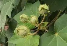 海滨木槿是锦葵科木槿属植物,落叶小乔木,株高3-5米,胸径20厘米,扁球形树冠,枝叶繁盛。厚纸质单叶互生,扁圆形、倒卵形或宽倒卵形,先端钝近平,具短突尖,基部圆形或浅心形,叶缘中上部具细圆齿,…全部>>