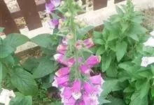 毛地黄是车前科、毛地黄属一年生或多年生草本植物。株高0.5—1米,茎直立,少分枝,全株被灰白色短柔毛和腺毛叶基生,呈莲座状,卵圆形或卵状披针形。顶生总状花序,花冠钟状,紫红色,内面有浅白斑点。菊果卵形。…全部>>