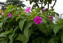 即紫茉莉,英文名:Four-o'clock,Marvel of Peru,为紫茉莉科、紫茉莉属多年生草本植物,一年生栽培。株高50~80cm。根粗壮,茎多分枝而散生。叶对生,卵形或心脏形。花数朵簇生…全部>>