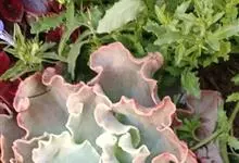 女王花笠,又名扇贝石莲花、女王花舞笠,是景天科拟石莲花属的多肉植物。由美国加利福尼亚州的育种师Dick Wright于1964年培育。特征是呈大波浪状褶皱的红色叶缘和气质高贵的粉紫色调。…全部>>