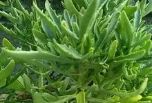 棒叶落地生根是景天科、落地生根属植物。茎直立、粉褐色。叶圆棒形,上表面有沟、粉色,有红褐斑。叶片交互对生,交叉排列成十字形。叶端锯齿上长有很小的幼株、落地后即可生根成活。原产非洲马达加斯加。…全部>>