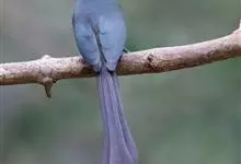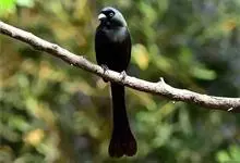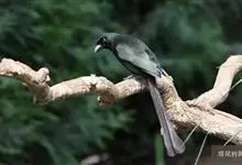 盘尾树鹊,是雀形目鸦科的珍稀鸟类,是一种中等体型的近黑色树鹊。尾甚长而端部展开;通体体羽闪亮深灰色,并具铜绿色光泽;嘴粗厚而呈钩状;眼先蓝色。虹膜蓝色;嘴黑色;脚黑色。单独或成对活动,…全部>>