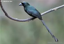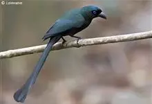 盘尾树鹊,是雀形目鸦科的珍稀鸟类,是一种中等体型的近黑色树鹊。尾甚长而端部展开;通体体羽闪亮深灰色,并具铜绿色光泽;嘴粗厚而呈钩状;眼先蓝色。虹膜蓝色;嘴黑色;脚黑色。单独或成对活动,…全部>>