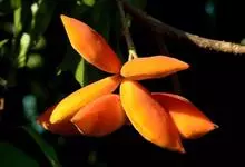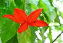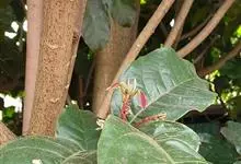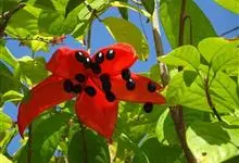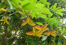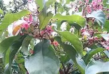 假苹婆是锦葵科苹婆属乔木植物。幼枝被毛;叶椭圆形或披针形,先端骤尖,基部钝或近圆无毛;圆锥花序腋生,花淡红色;蓇葖果鲜红色,长卵圆形或长椭圆形;种子卵圆形黑褐色;花期4-6月。…全部>>