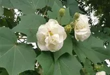 海滨木槿是锦葵科木槿属植物,落叶小乔木,株高3-5米,胸径20厘米,扁球形树冠,枝叶繁盛。厚纸质单叶互生,扁圆形、倒卵形或宽倒卵形,先端钝近平,具短突尖,基部圆形或浅心形,叶缘中上部具细圆齿,…全部>>