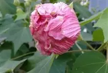 木芙蓉,锦葵科木槿属落叶灌木或小乔木。小枝上有细绒毛;叶片为卵状心形,托叶为披针形,常早落;花单生,花萼为钟形,花冠初为白色或淡红色,后逐渐变为深红色;果实为扁球形,有淡黄色的毛附着。花期8到10月。…全部>>
