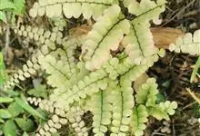 铁线蕨,铁线蕨科铁线蕨属多年生草本植物,其根状茎横走,披棕色披针形鳞片;叶片卵状三角形,顶端钝圆并有细锯齿,叶脉扇状分叉;孢子囊群生于囊群盖下面;无花,以孢子繁殖花色;分株繁殖为主,生长期均可,…全部>>