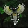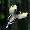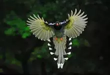 台湾蓝鹊:体长64至65厘米,翼展18至21厘米,尾长约40厘米,尾羽长占了总体长的三分之二。头、脸、颈、喉、胸都是黑色,黄色的眼珠包围黑色的瞳孔,鲜红色的鸟喙、双脚,…全部>>