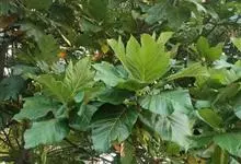 面包树 Fosberg)是桑科波罗蜜属植物。叶大,成熟之叶羽状分裂,表面深绿色,背面浅绿色;穗状花序单生叶腋,雄花序长圆筒形至长椭圆形或棒状;聚花果倒卵圆形或近球形;花期为3~5月,果期为7~10月。…全部>>