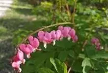 荷包牡丹 Fukuhara),是罂粟科荷包牡丹属的多年生草本植物,株高30-60厘米,具肉质根状茎;茎直立呈圆柱形;叶二回三出全裂,状似牡丹叶;总状花序顶生,基部为心形,花瓣紫红色至粉红色,稀白色,…全部>>
